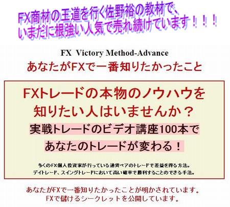 今でも口コミで高い評価のFX・必勝法!佐野裕・先進のFXビクトリーメソッド【アドバンス】完全版の公式サイトはこちらそこであなたにおススメのFX・必勝法の商品をご紹介します。